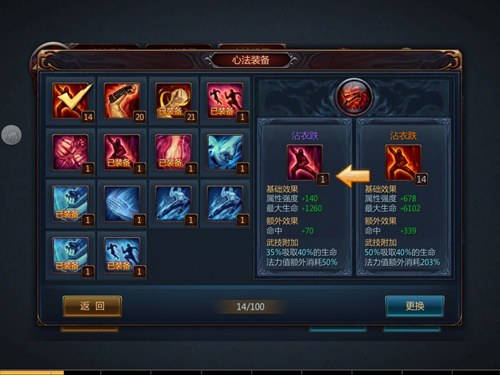 心法绑定武技之后,就能大幅度提升个人战力和武技属性。一般来说,装备心法时,额外效果首选攻击,其次是防御和暴击,然后是命中、闪避、坚韧。当然也可以根据职业特色和心法的武技附加效果针对性装备。咒术师群攻伤害值高,可以选择减少CD时间心法;战士单体高输出,但是生命值相对较低,可以选择回血、吸血或者增强防御的心法;而刺客灵活机动,在装备增强暴击和攻击的心法之后,在竞技场PK胜算自然更高一筹。